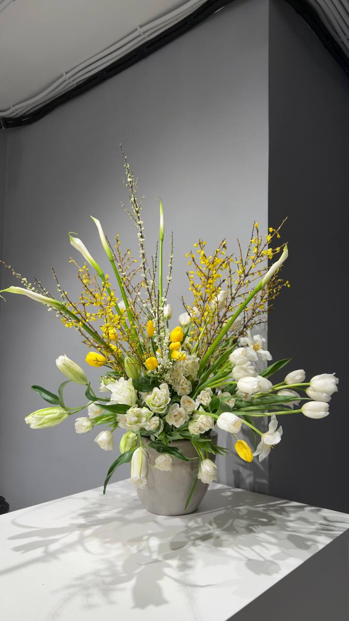 Мы работаем исключительно с сезонными цветами. Это гарантирует высочайшее качество и поддерживает устойчивые практики выращивания. Представленные выше фотографии передают размер и настроение композиций, но не являются точными копиями.